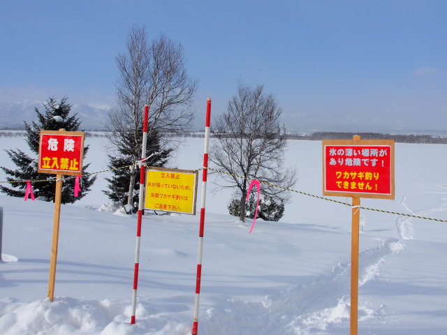 ワカサギ釣りできません! 投稿日時: 2019年1月11日 投稿者: 武田しん 午前中は議会広報編集委員会のため登庁していました。帰りにオアシスパークの様子を見に行きました。 写真のとおり現時点(2019年1月11日)では、氷の厚さが十分でないため立ち入り禁止となっており、ワカサギ釣りはできません。管理棟の駐車場も全て利用できない状況です。 毎年のように、落水事故やテントでの一酸化炭素中毒事故がありますので、安全最優先で冬のレジャーを楽しみたいものです。