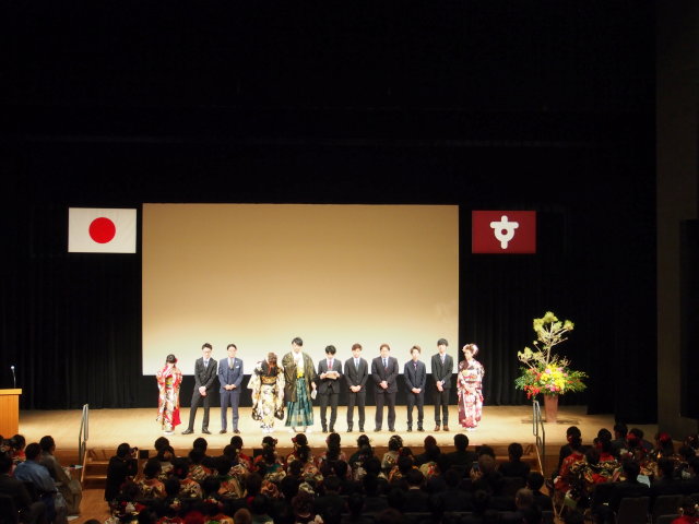 こちらは、新成人の世話人会の皆様です。式典の終了後、世話人会の皆様が様々な企画をするのが砂川市の成人式の特徴です。私は式典も毎年出席していますが、その後の世話人会の皆様が企画する交流会も楽しみにしています。皆様、本当におめでとうございます。