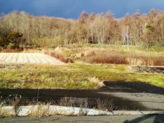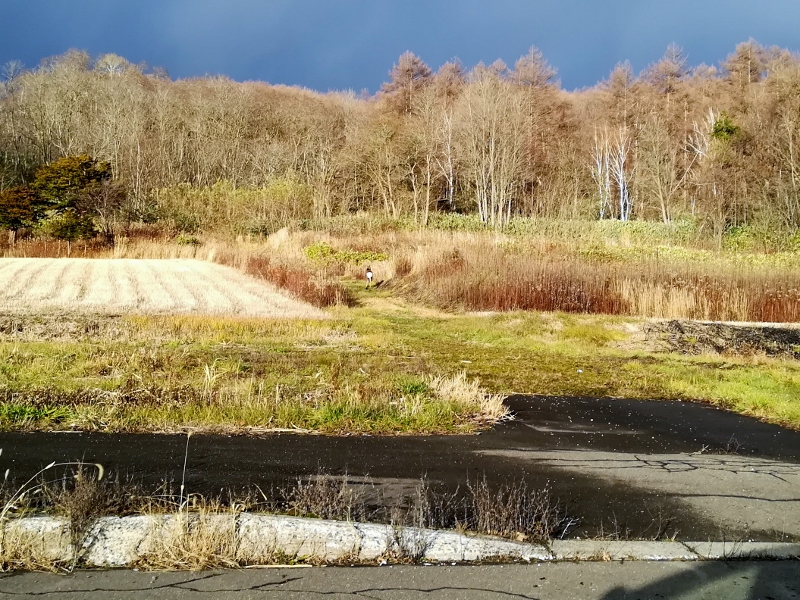 市政報告配布のため街回り中、焼山でエゾシカの群れに遭遇。写真は逃げ遅れたピンコ(一本角のシカの若いやつ)。初めに大型のオス2頭が畑にいたのに気づき、車から降りて眺めていると、藪からメス及び子供からなる7~8頭の群れが出てきました。昼間からこのような大きな群れが人里でウロウロしているのはあまりみたことないですね。