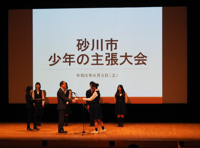 令和5年度砂川市少年の主張大会 投稿日時: 2023年6月3日 投稿者: 武田しん 「ゆう」の大ホールで開催された令和5年度砂川市少年の主張大会に出席しました。 砂川中学校から5人の生徒が参加し、日頃抱いている思いや考えを発表しました。 発表中、2回も洪水関連のエリアメールの着信音が会場内のあちこちで鳴り響くというハプニングもありましたが、いずれもすばらしい発表内容でした。 少年達にとって、練習を重ね、多くの人の前で自分の考えを発表したことは得難い経験になったと思います。