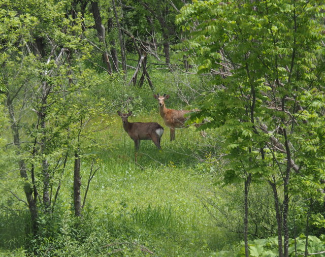 砂川遊水地内の生き物 投稿日時: 2023年6月5日 投稿者: 武田しん 先週火曜日(30日)午後1時頃、砂川市役所から300メートルほど南にある越流堤付近の森で、エゾシカ4頭の群れを目撃しました。 北海道ではエゾシカによる獣害が深刻な問題となっており、砂川市もその影響を受けています。ただし、遊水地内等では銃による駆除は行えない制約があります。