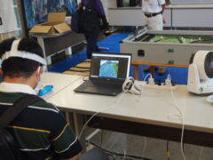 お祭り広場では、わくわく化学実験やスペシャルスーパーすくいなど、子どもたちが楽しめる多彩なコーナーが設置されていました。義務教育学校の基本設計書案についてのVRは、私自身も体験してみました。